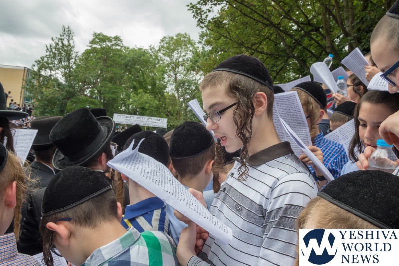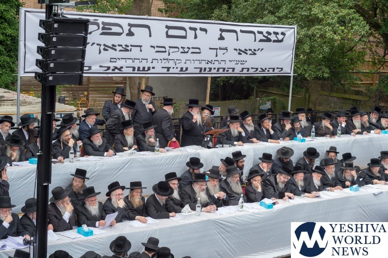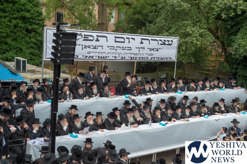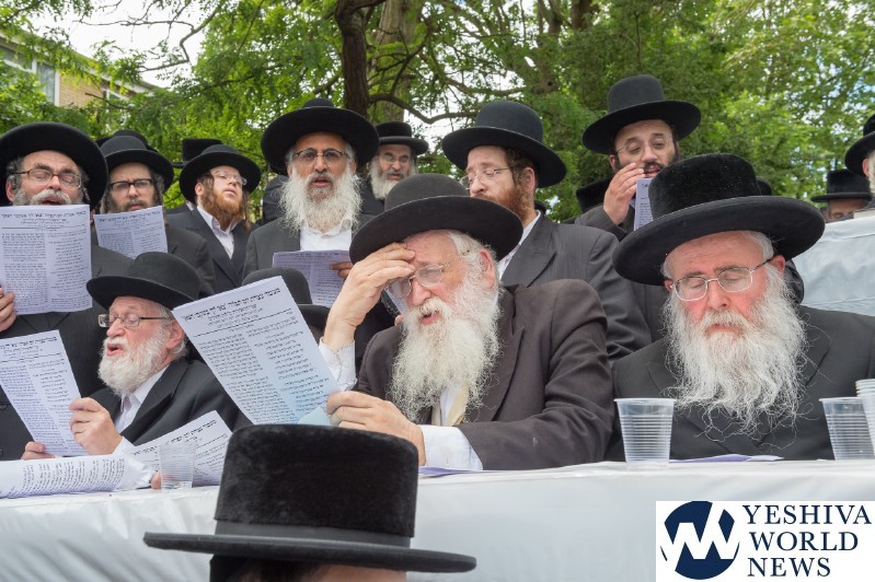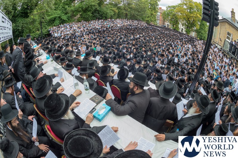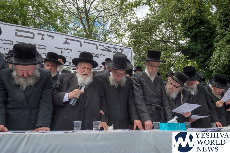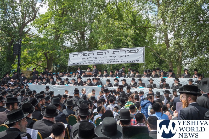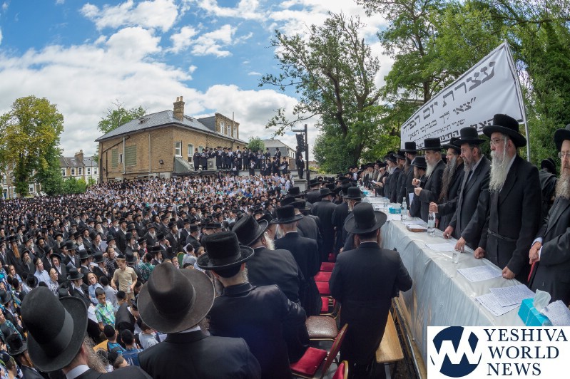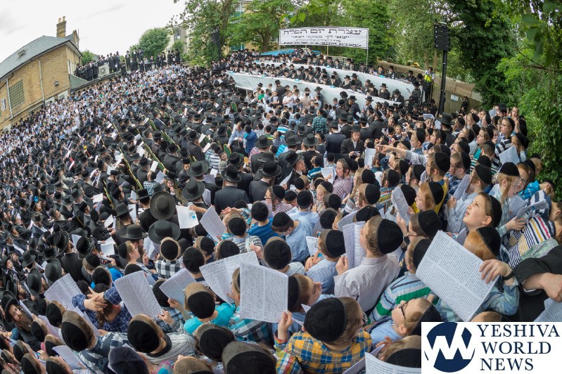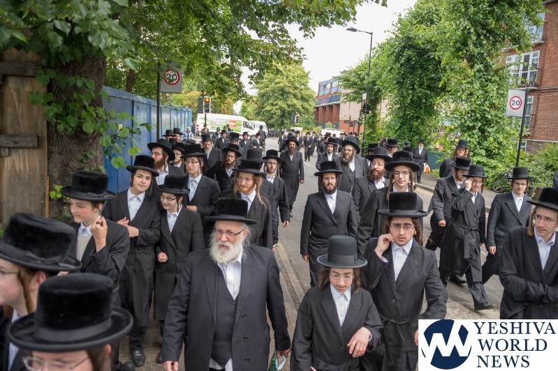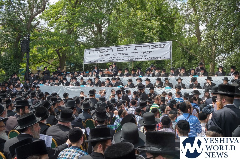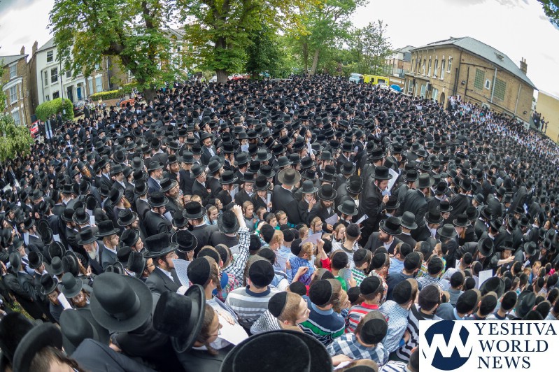 Approximately 7,000 Chareidi Jews gathered in Stamford Hill on Tuesday afternoon, to participate in a Yom Tefillah against the harsh threats targeting Chinuch in yeshivos. The massive event was held outside Bais Hamedrash Toras Eitz Chaim on Lordship Road.