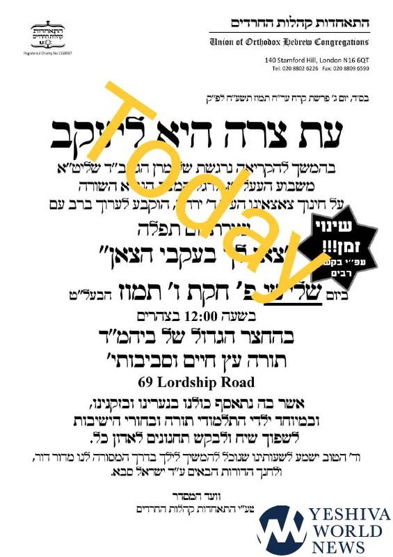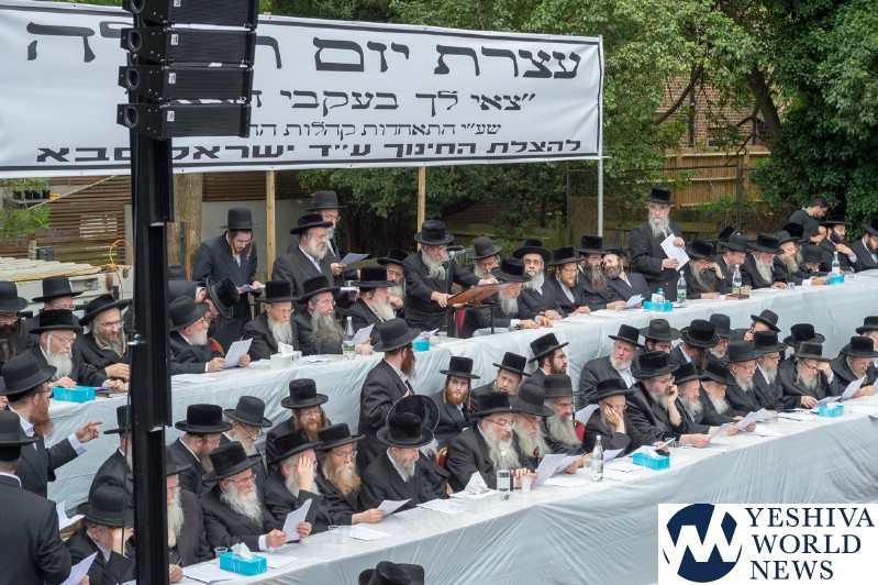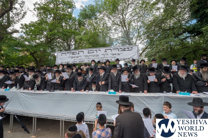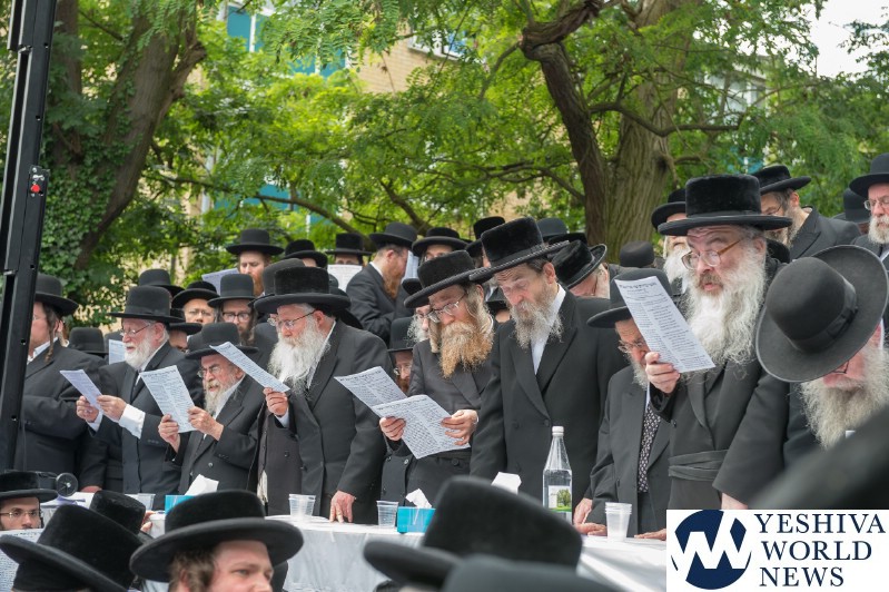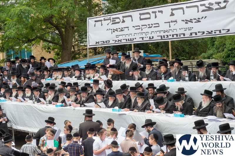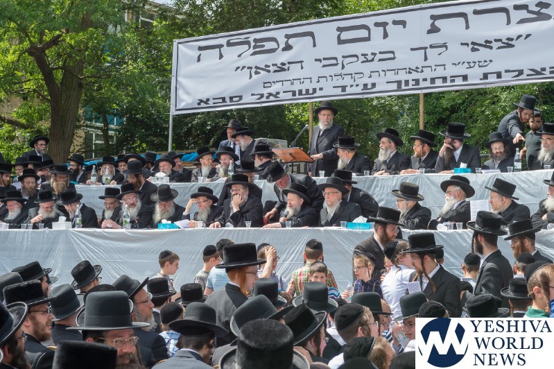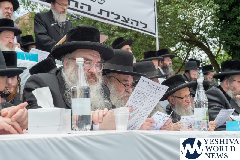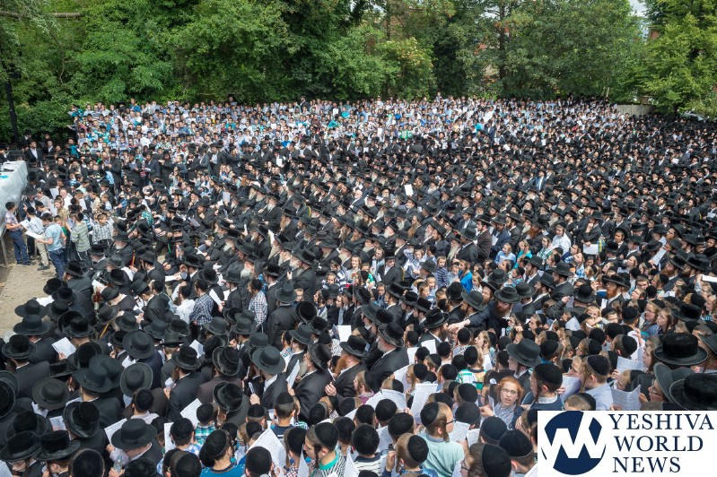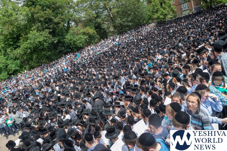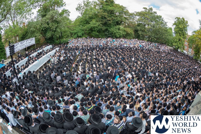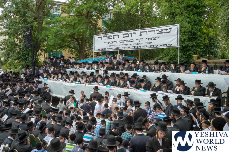 Approximately 7,000 Chareidi Jews gathered in Stamford Hill on Tuesday afternoon, to participate in a Yom Tefillah against the harsh threats targeting Chinuch in yeshivos. The massive event was held outside Bais Hamedrash Toras Eitz Chaim on Lordship Road.
