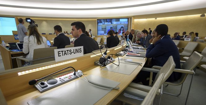 On Wednesday, the U.S. chairs sat empty as discussion turned to summary executions, freedom of expression, the rights of migrants and violence against women among other things.