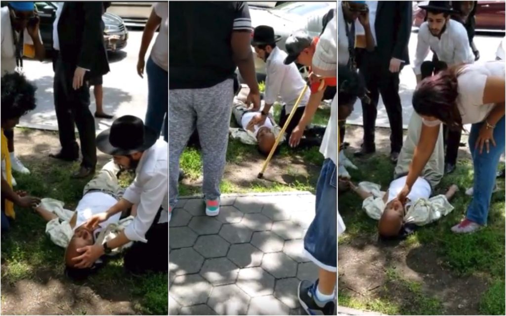 An African American man collapsed on Eastern Parkway in Crown Heights on Wednesday afternoon, and an Orthodox Jewish man rushed to his aide.