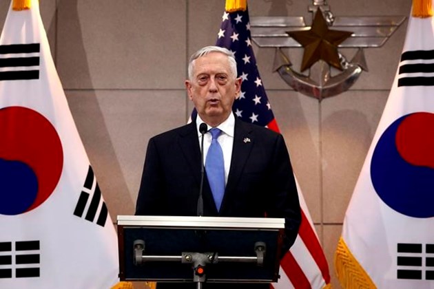 Speaking alongside South Korean Defense Minister Song Young-moo, Mattis read a lengthy statement reinforcing America’s “ironclad” commitment to Seoul, adding that “the U.S. will continue to use the full range of diplomatic and military capabilities to uphold this commitment.”