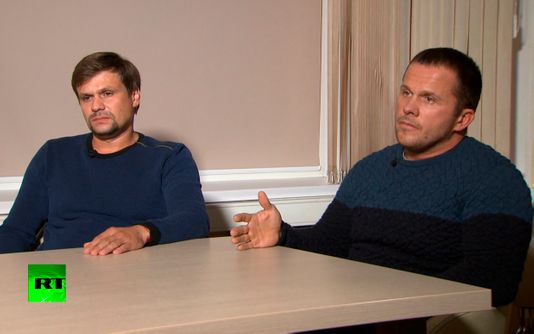 Petrov and Boshirov, both charged in absentia by Britain last week for trying to kill Sergei Skripal and his daughter, Yulia, with the nerve agent Novichok, went on the Kremlin-funded RT satellite channel Thursday to proclaim their innocence, deny they were agents of the military intelligence service widely known as the GRU, and say they were merely tourists in the city southwest of London.