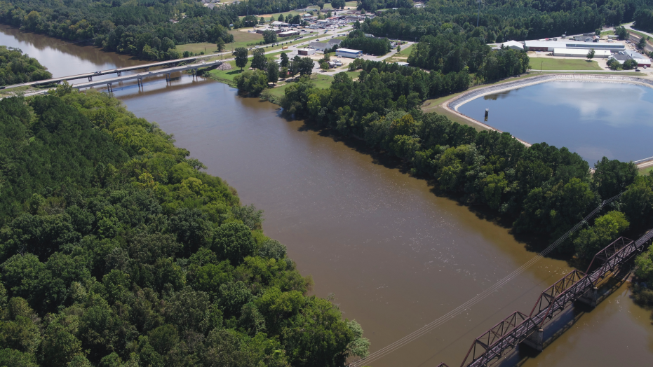 On U.S. Route 401 nearby, rain rose in ditches and around unharvested tobacco crops along the road. Ponds had begun to overflow, and creeks passing under the highway churned with muddy, brown water. Further along the Cape Fear River, grass and trees lining the banks were partly submerged, still well below a highway bridge crossing it.