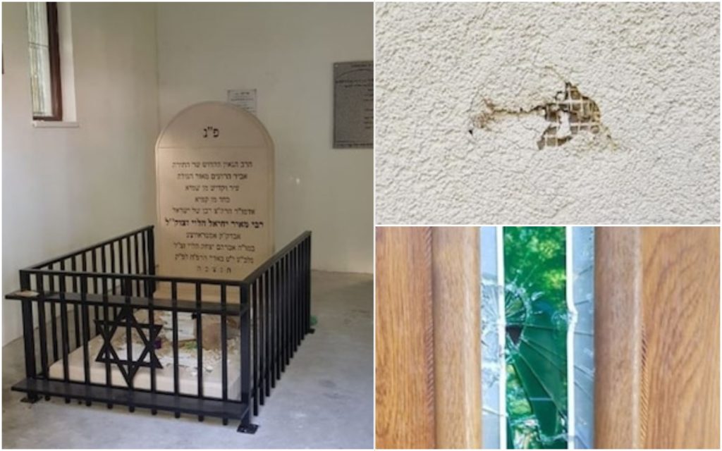 Meir Bulka, founder of the organization that oversees the cemetery, reports the Kever was damaged by drunkards. He shared the attached photos showing shattered windows and wall damaged with what looks to be a hammer.