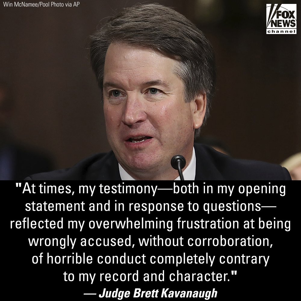 Against that backdrop, I testified before the Judiciary Committee last Thursday to defend my family, my good name and my lifetime of public service. My hearing testimony was forceful and passionate. That is because I forcefully and passionately denied the allegation against me. At times, my testimony—both in my opening statement and in response to questions—reflected my overwhelming frustration at being wrongly accused, without corroboration, of horrible conduct completely contrary to my record and character. My statement and answers also reflected my deep distress at the unfairness of how this allegation has been handled.