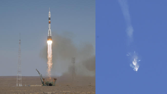 The astronauts were to dock at the International Space Station six hours after the launch, but the three-stage Soyuz booster suffered an unspecified failure of its second stage. Search and rescue teams were immediately scrambled to recover the crew and paratroopers were dropped from a plane to reach the site and help the rescue effort.