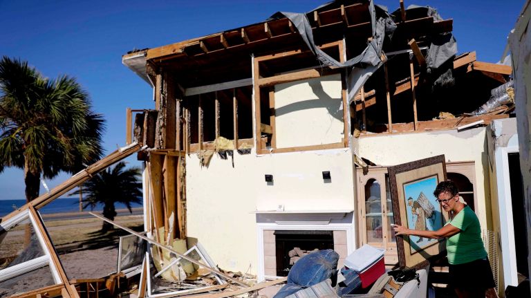 A framed portrait of Jesus was propped Sunday facing out of the window of Diana Hughes’ home in Mexico Beach. She rode out the hurricane on the couch huddled with her dog and her ex-husband.
