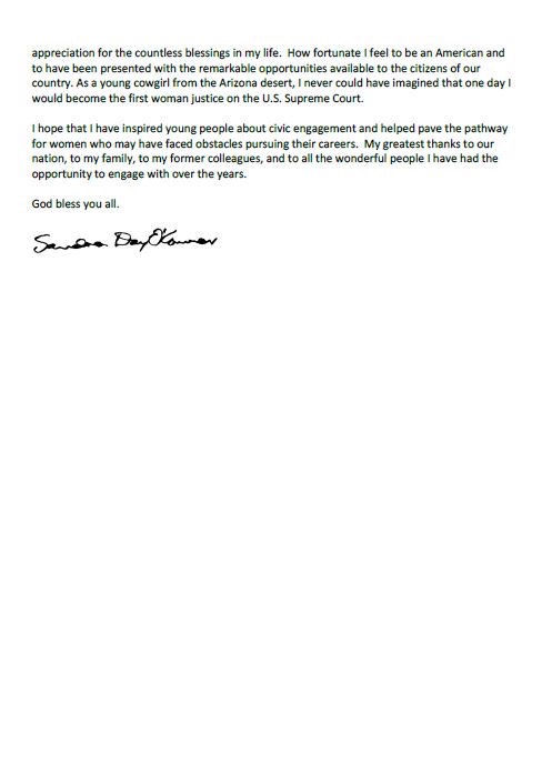 After the court’s 2010 Citizens United ruling allowing corporations to spend freely on elections for Congress and president, she told an audience: “Gosh, I step away for a couple of years and there’s no telling what’s going to happen.” Still, that year she told an interviewer that she didn’t “regret for one minute” retiring when she did.