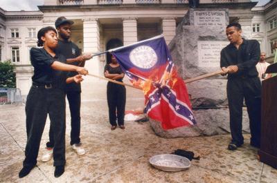 To gadolhadorpost: I would gladly burn a confederate battle flag. Why should Jews limit themselves to swastika flags? Ethnic hatred is an abomination no matter the target.
