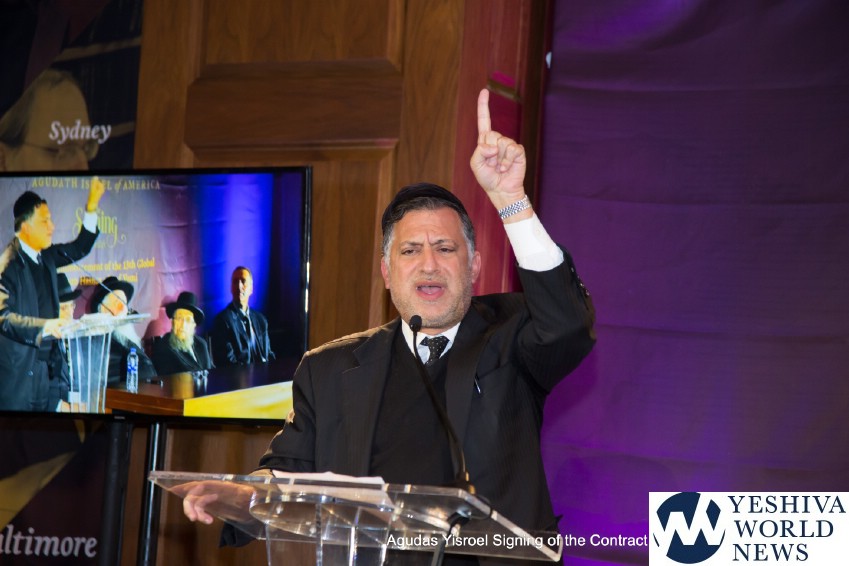 Several members of the Agudah’s next generation of askanim who are working on new initiatives to further promulgate Torah study spoke next. Chesky Eider, Shragie Goldschmidt, David Solomon and Yehuda Zachter all shared their excitement about Masmidei HaSiyum, which will have children learning tens of thousands of Mishnayos and Chavrei HaSiyum, which will inspire thousands of kehilos to make joint siyumim on Mesechtos, full Sedarim and even Shas. Also announced were an initiative to establish hundreds more Daf Yomi shiurim around the world and plans for additional partnerships to make The Siyum an unqualified success.