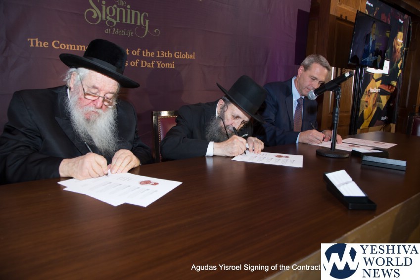 Nothing brings back more potent memories for Torah Jews than flashing back to August 2012 as they stood 90,000 strong, led by our gedolim, the words Shema Yisrael piercing the very heavens. Those unforgettable moments came to life again on October 30th at MetLife Stadium, as a group of community leaders, askanim, and Gedolei Yisrael joined together to sign the contract for The 13th Siyum, which will be held on January 1st, 2020 at MetLife Stadium.