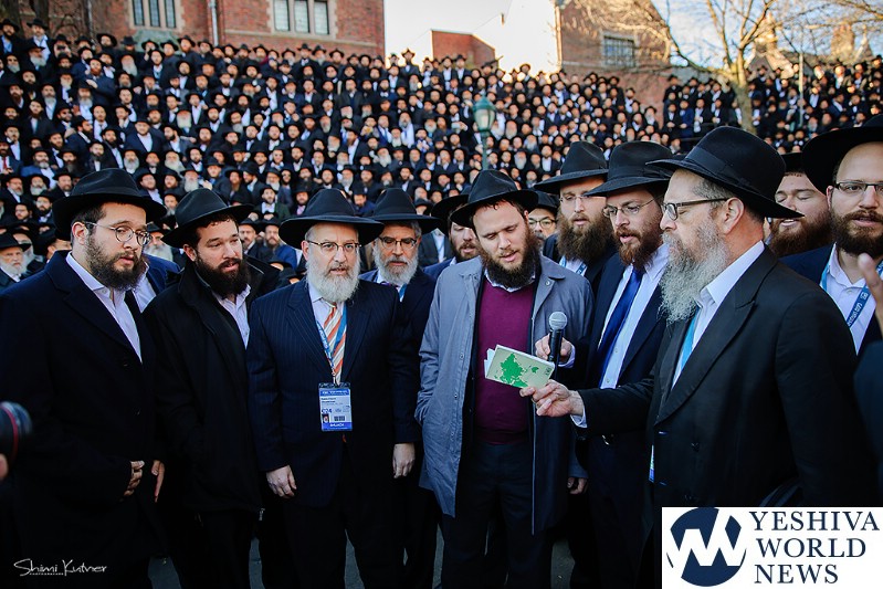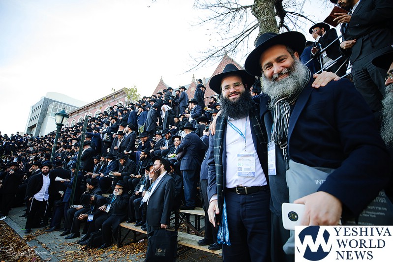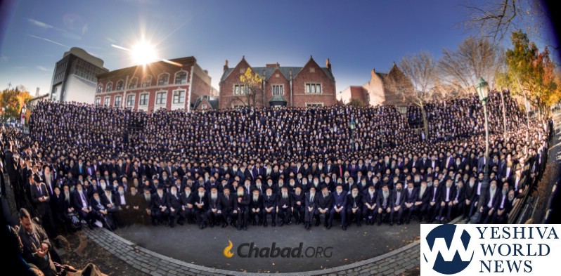 Thousands of Shluchim posed for a group photo in front of Chabad-Lubavitch world headquarters in the Brooklyn borough of New York, Sunday, Nov. 4, 2018. They are among more than 5,000 Chabad-Lubavitch rabbinic emissaries and communal leaders from 100 countries hailing from as far away as Laos and Angola, Ghana and Uzbekistan that are gathering for the International Conference of Chabad-Lubavitch Emissaries.