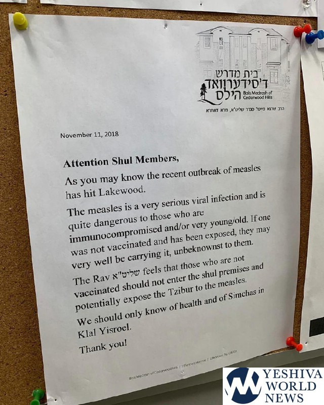 YWN has been reporting extensively about the measles outbreak, currently spreading through multiple Chareidi communities due to the so-called “anti-vaxxer” cult, who refuse to give the highly recommended and effective vaccine. Health Departments are extremely concerned, and there is panic spreading among parents of children in schools.