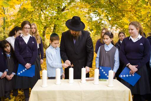 On Wednesday, students assembled under a maple tree in front of their school building. They prayed in Hebrew and German and lit six white candles to commemorate the synagogues that were burned down, as well as the 6 million who perished in the Holocaust.