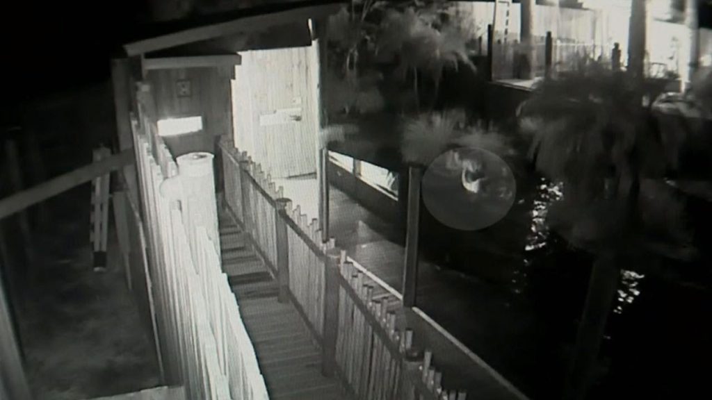 According to the arrest report, security video showed a 9-foot (2-meter) crocodile lunging at the man who escaped to the edge of the pool. When he sits on the bank of the pool, the “crocodile locks onto his left foot.”