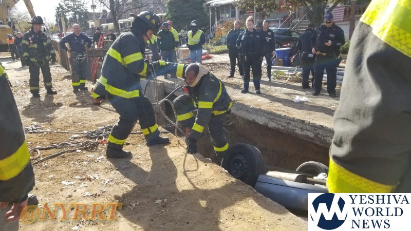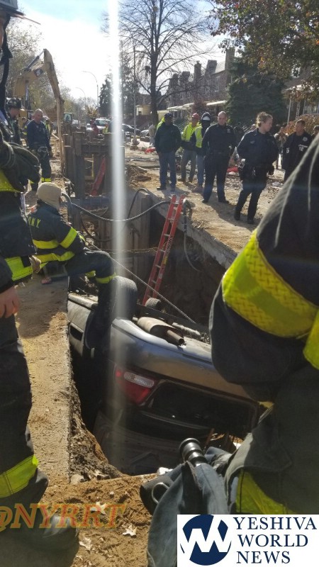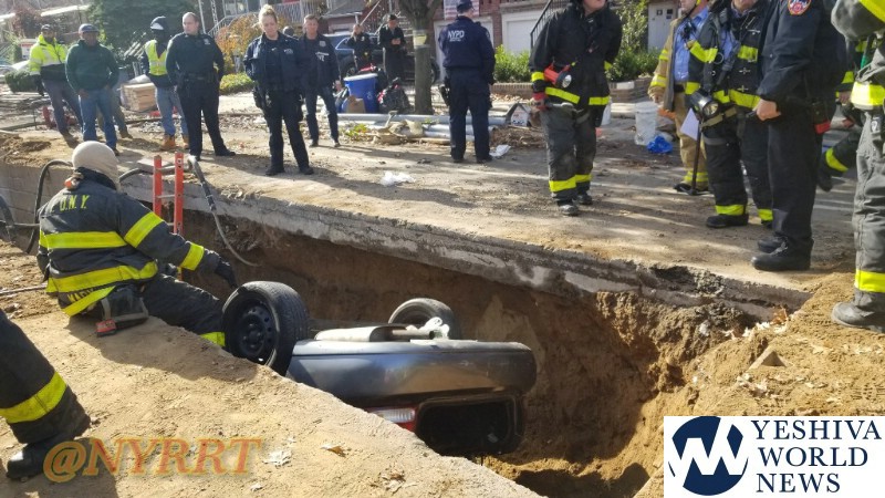 An elderly man is lucky to be alive on Wednesday, after he drove his vehicle into a construction hole in Brooklyn.