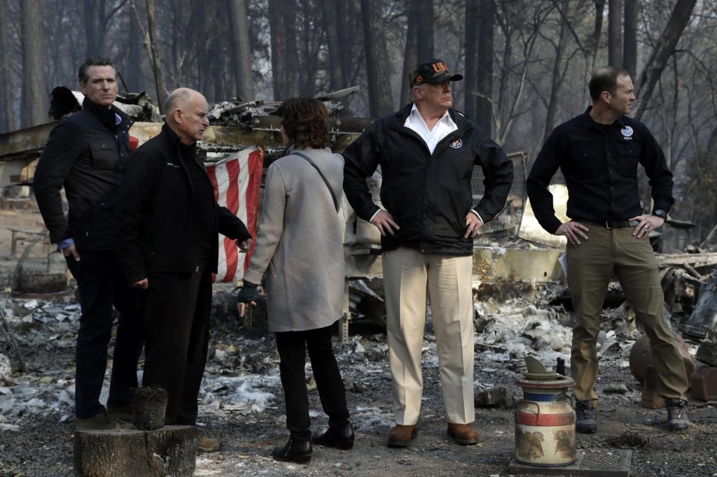 In Northern California, Trump’s skepticism about the impact of climate change on the wildfires was on display when he, Brown and Newsom spoke to reporters. Asked if he thought climate change played a role in the fires, Brown responded: “Yes. Yes. And we’ll let science determine this over a longer period of time.”