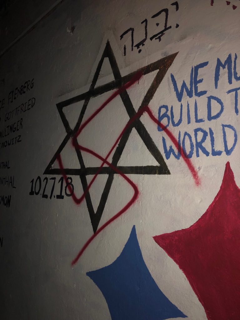 University president Vincent Price said in a letter to the school community that a red swastika was painted Sunday night on the tribute to those who died in the shooting at the Tree of Life Synagogue. The East Campus Bridge and tunnel underneath are spaces where students can paint messages ranging from campus event promotions to memorials.