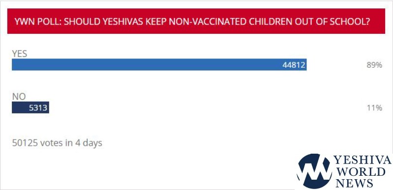 As the measles outbreak continues to spread in Orthodox Jewish communities around the globe, YWN published a poll asking readers if Yeshivas should keep unvaccinated children out of school. The results were overwhelmingly in favor of the affirmative.