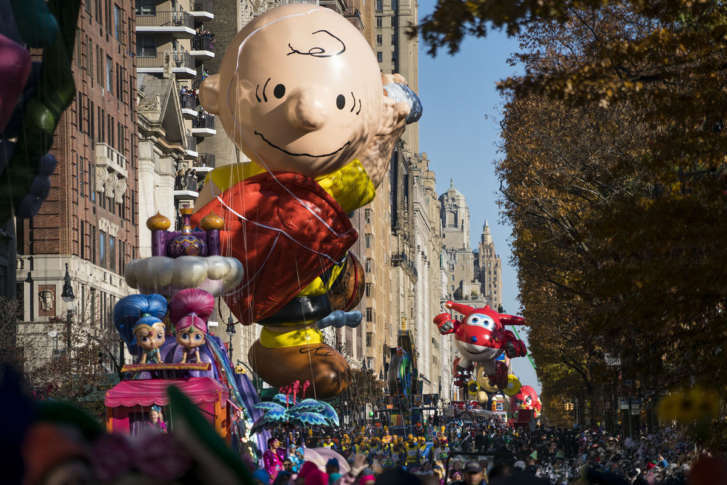 The parade runs 46 blocks from the west side of Central Park to Macy’s flagship store in midtown Manhattan.