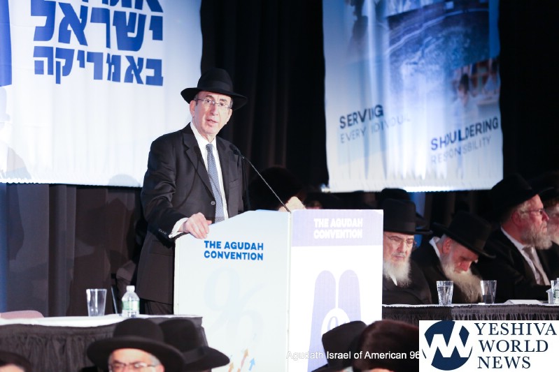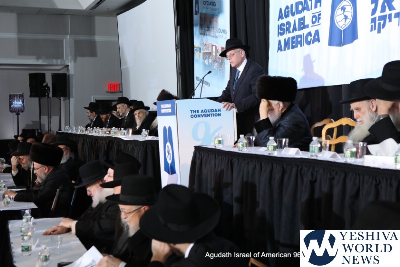 “If we were to immerse ourselves in everything that Agudas Yisroel stands for, we’d be better people!” This call to action, stated with feeling by HaRav Yaakov Perlow, Novominsker Rebbe and Rosh Agudas Yisroel, resonated among the packed crowd at last night’s Motzoei Shabbos keynote session of the Agudah Convention.