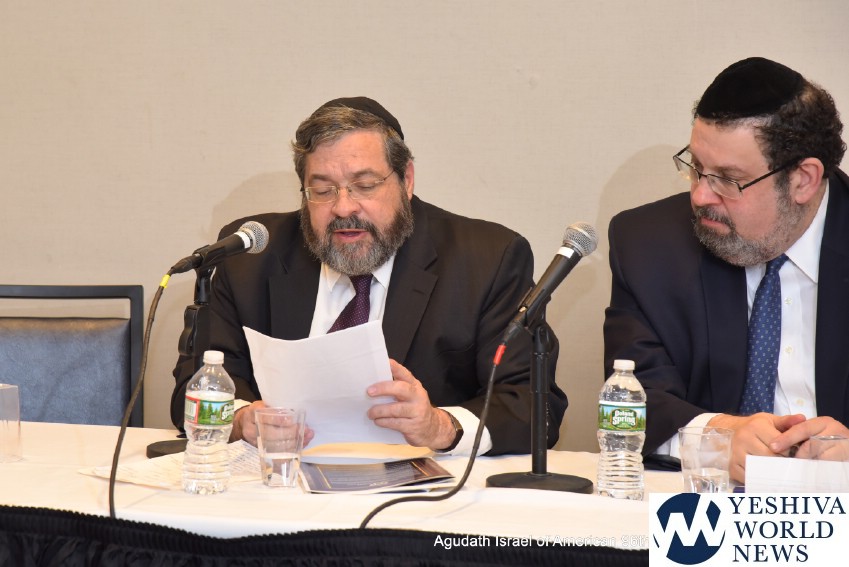 Mr. Shimon Lefkowitz, son of Agudah stalwart Rabbi Yisroel Lefkowitz z”l, and – together with the illustrious Lefkowitz family – supporter of the Lefkowitz Leadership Initiative – was this year’s convention chairman. “For the past few days,” he said, “we have been zocheh to a momentous knessiah l’sheim shamayim. The Agudah looks to the future, forward thinking and forward moving.” Mr. Lefkowitz asked the assembled to get involved: “Together let us be zocheh to continue the mission; together let us be zocheh to expand the Agudah and its important work for Klal Yisroel!”