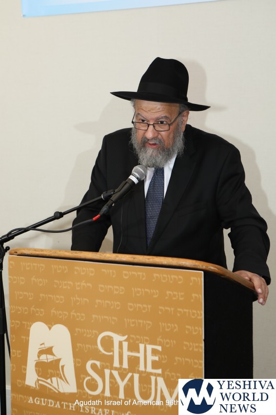 Convention co-chairman Sruly Bornstein, introducing Thursday night’s keynote speakers, noted that “Moving Forward” means attempting to do what one might otherwise think is impossible. In that vein, Rabbi Shmuel Kamentsky Rosh HaYeshiva, Yeshiva Gedola of Philadelphia, explained that the last Siyum HaShas of Daf Yomi sparked many people’s limud haTorah, and even inspired entirely new learning programs such as Daf Hashovua. He also encouraged the assembled to strengthen their Torah learning in preparation for the upcoming 13th Global Siyum HaShas. Consistent with that message, the Agudah presented the Chavrei HaSiyum program, which encourages kehillos and individuals to make their own siyumim in conjunction with the Siyum HaShas. (More information about the Chavrei HaSiyum program is available at http://www.chavreihasiyum.org.)