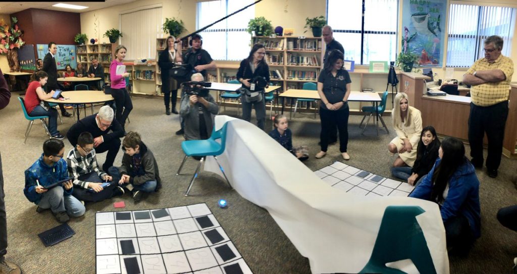 Ivanka Trump and Apple CEO Tim Cook visited a heavily Hispanic Idaho school district on Tuesday to trumpet her workforce development initiative promoting science, technology, engineering and math.