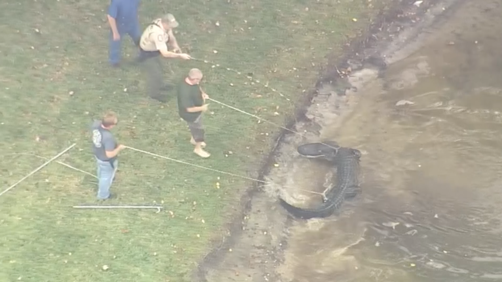 Officers with the Florida Fish and Wildlife Conservation Commission found the alligator at the lake in a retirement community. The man’s sneaker came out of the reptile’s mouth as it was removed from the lake.