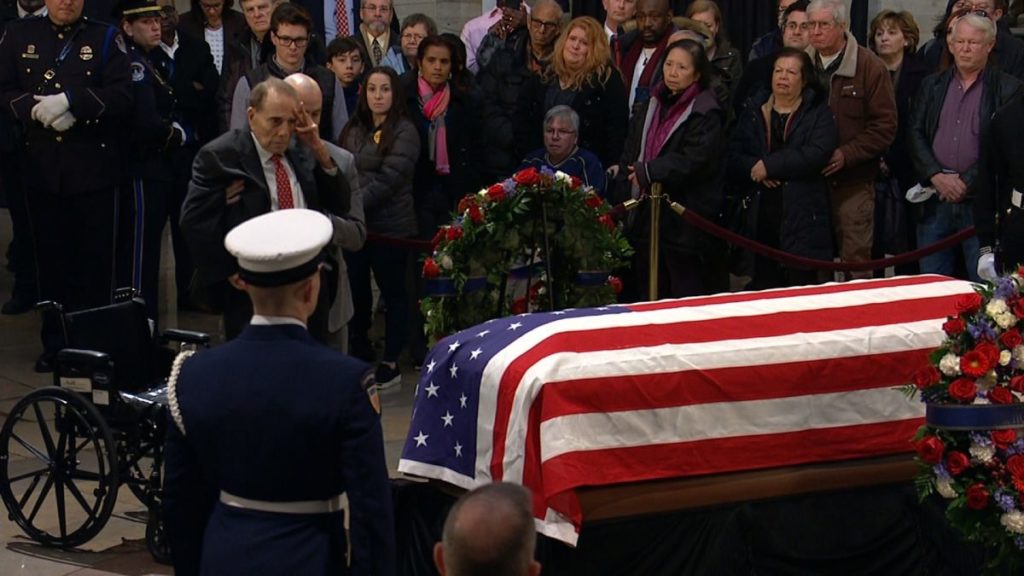“He was so qualified, and I think he was just a decent man,” said Sharon Terry, touring Washington with friends from an Indianapolis garden club. Said her friend Sue Miller, also in line for the viewing: “I actually think I underestimated him when he was in office. My opinion of him went up seeing how he conducted himself as a statesman afterward.”