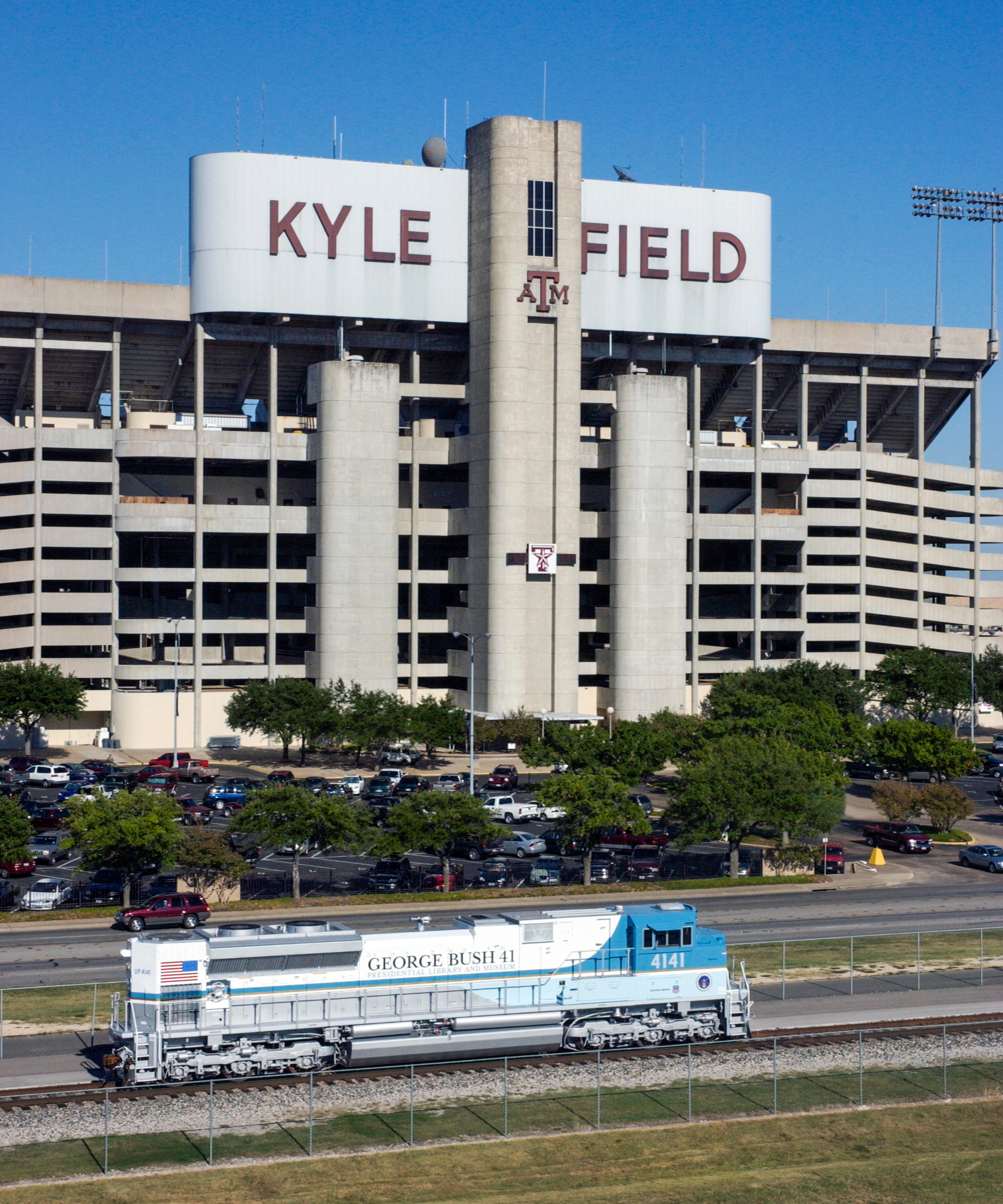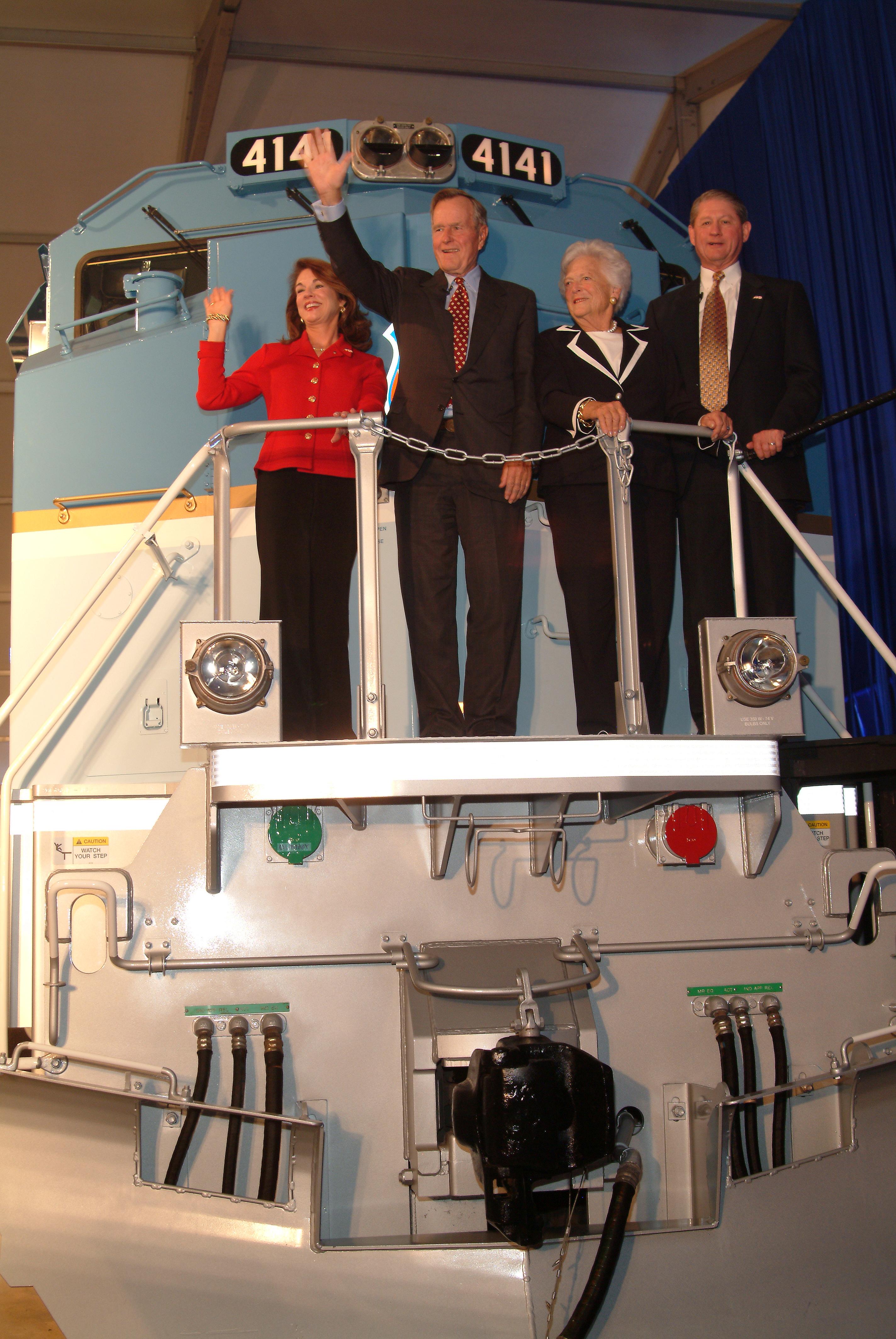 “I might have left Air Force One behind,” Bush quipped during the 2005 unveiling of 4141, a blue and gray locomotive commissioned in honor of the 41st president and unveiled at Texas A&M University.