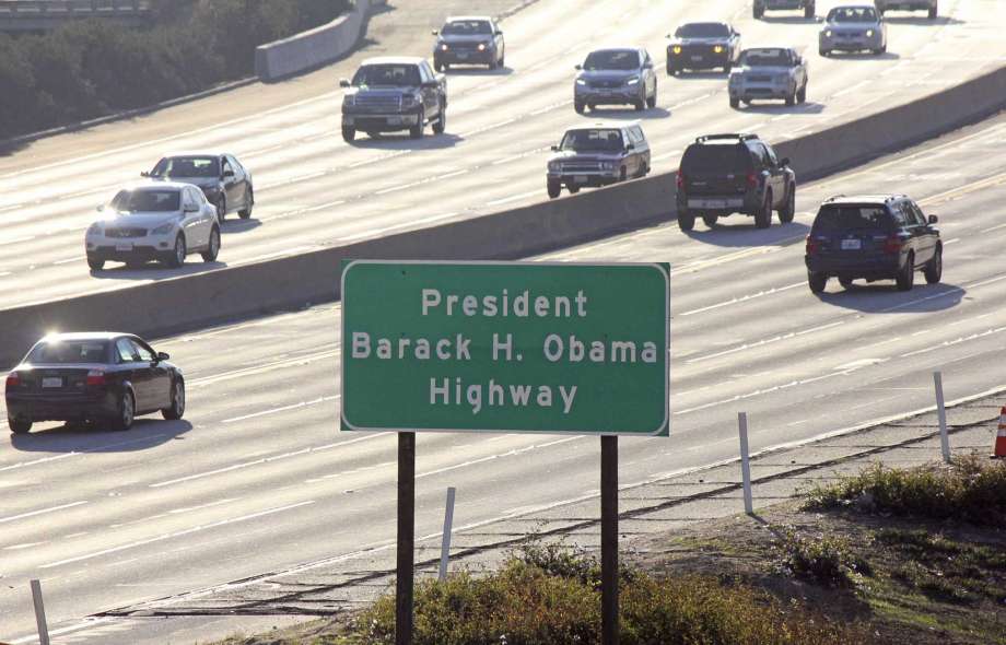 Signs have gone up naming a section of a Los Angeles-area freeway as the President Barack H. Obama Highway.