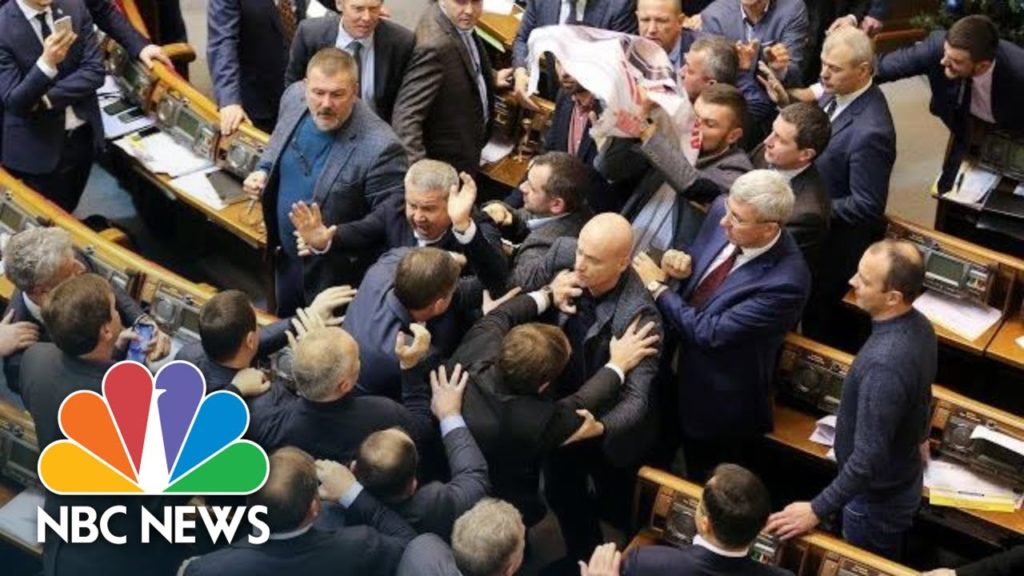 The brawl started over a poster labeling a politician “Putin’s agent.” This was the latest of several fights between Ukrainian lawmakers in recent years.
