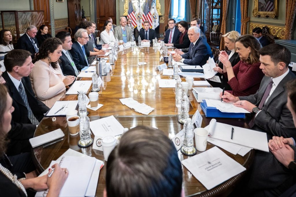 Productive discussion w/ Congressional leadership staff at @WhiteHouse. @SecNielsen gave a full presentation on crisis along Southern Border. We reaffirmed @POTUS’ commitment to secure the border, build the wall, keep Americans safe & reopen gov’t. Discussions continue tomorrow. pic.twitter.com/C7k9Sg8guY