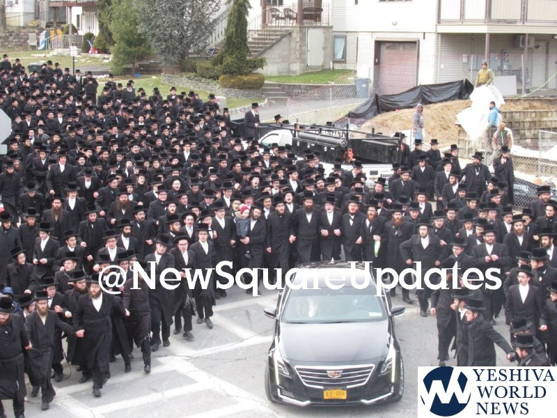 He then returned to New Square, where he was greeted by hundreds of his Chassidim singing and dancing.