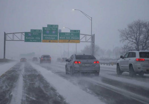 In Kansas, a snowplow driver was killed when his vehicle rolled over, and in southeastern Missouri, slippery conditions caused a 15-vehicle crash on Interstate 55 on Saturday.
