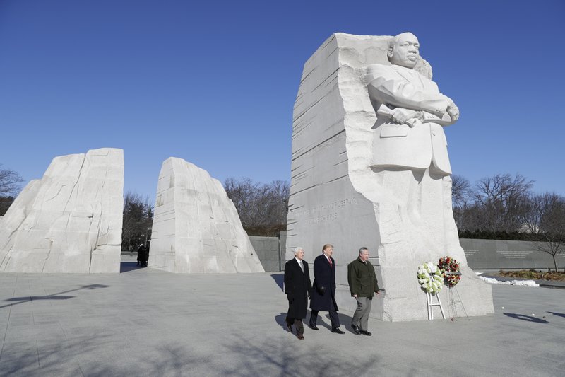 President Donald Trump paid a brief visit to the Martin Luther King Jr. memorial in Washington on the holiday honoring the civil rights leader.