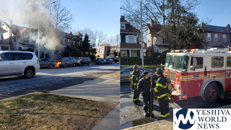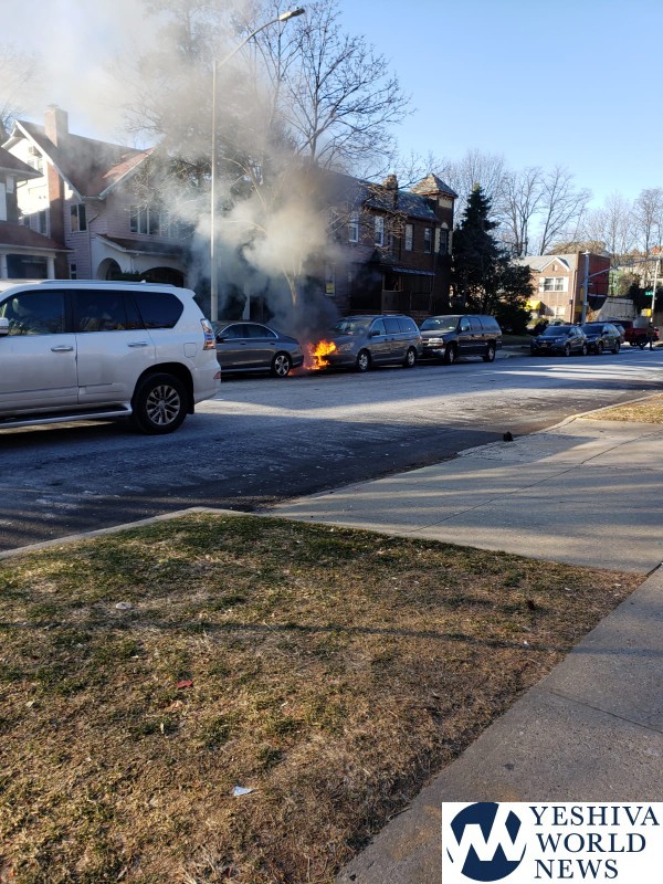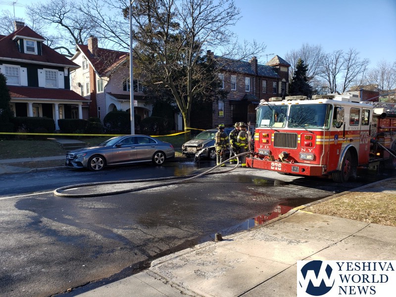 A transformer exploded under a car in Flatbush, setting the vehicle on fire.