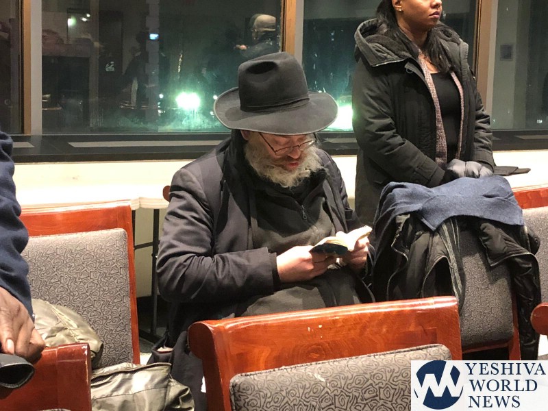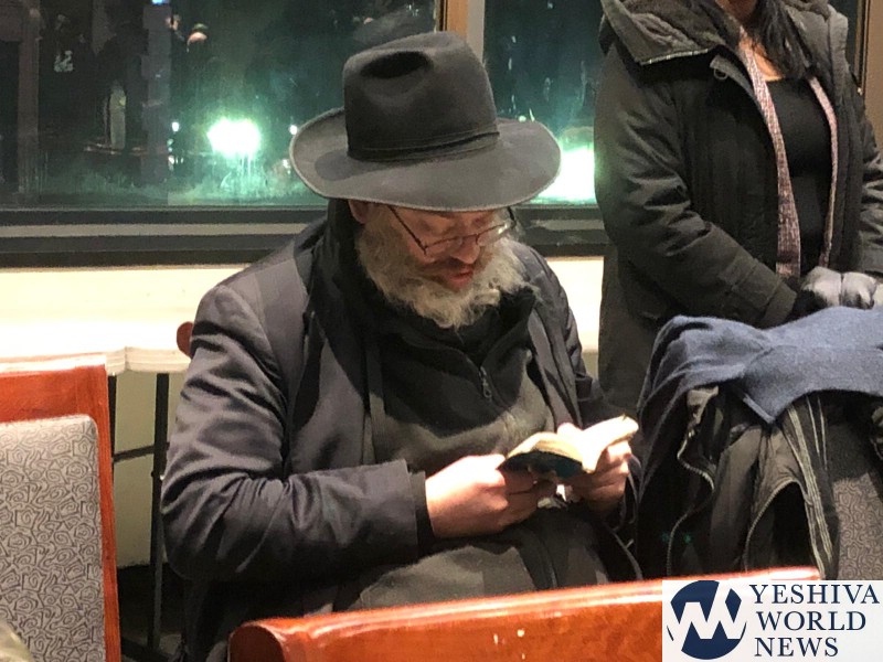 Pictures remind me of the godol learning during a sports game in England. Here too, the victim is learning (or saying tehilim) during a reception of politicians (Attorney General) in which he is a focus. Gadlus!