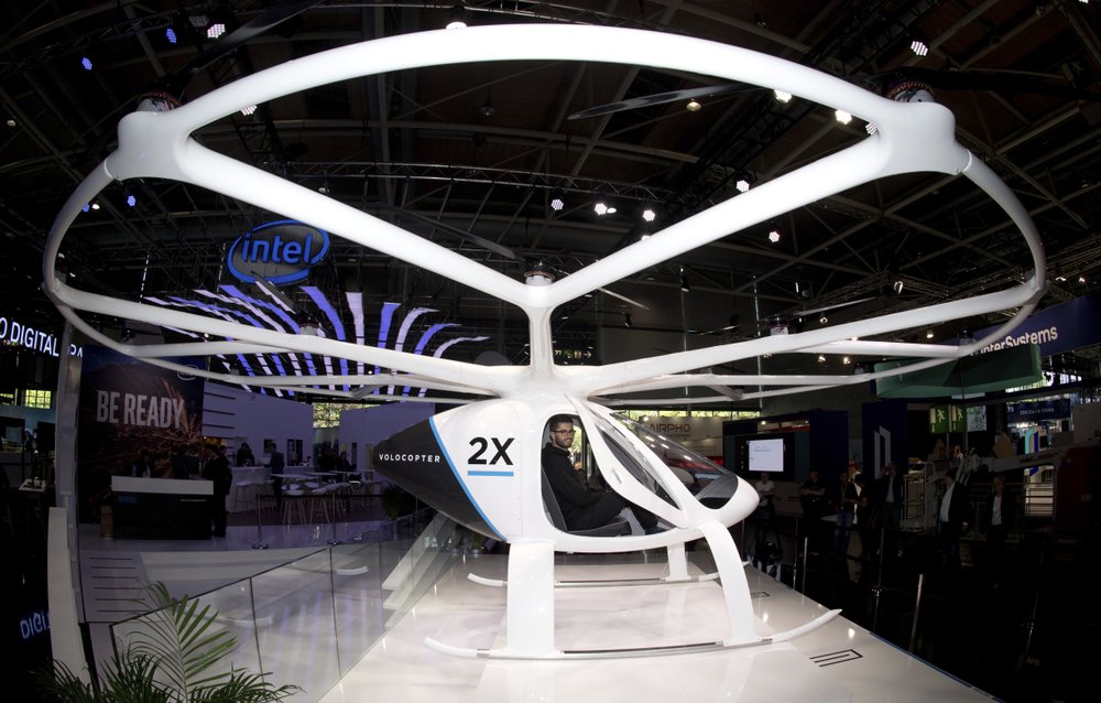 Volocopter says its aircraft, based on drone technology and flight tested in Dubai, are quiet, safe and local emissions-free. The idea ultimately would be to operate pilotless when the legal framework is in place.