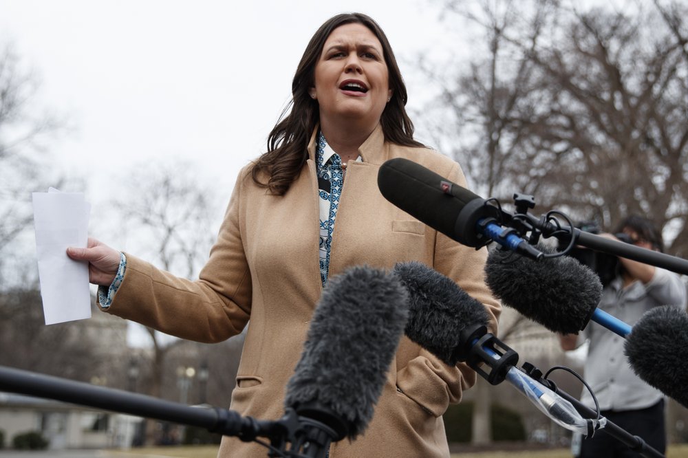 Sanders says in a statement released Friday that she was “happy to voluntarily” sit for the interview. It was unclear when Sanders was interviewed but she says her boss, President Donald Trump, urged her to “fully cooperate.”