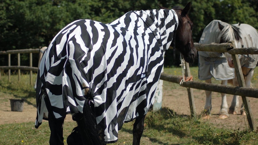 The researchers found that fewer horseflies landed on the bedecked horses than on those without the striped coats, suggesting that zebra stripes may offer protection from blood-sucking insects that can spread disease.
