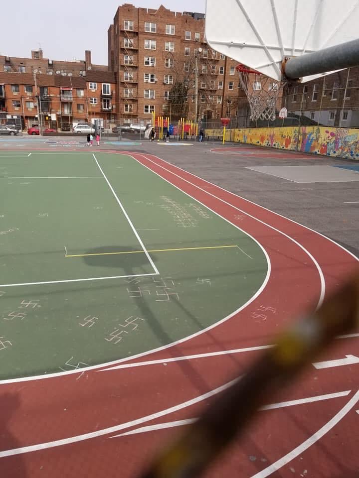 Swastikas and Nazi symbols, as well as the term “Heil Hitler” (sic) were discovered drawn all over an elementary school playground in Queens today. @CMKoslowitz & @tobystavisky were at the scene, and it has since been cleaned. @NYPDHateCrimes is investigating this incident. pic.twitter.com/4Mrh63bSbN