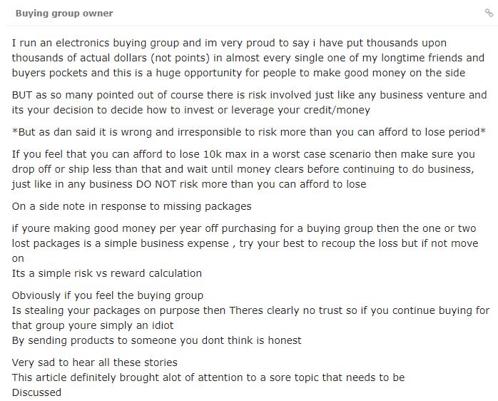 One DDF member with thousands of posts was too embarrassed to post under his regular forum name, so he opened a new account to share his experience. In short, he allowed businesses to spend hundreds of thousands of dollars on his cards each month and enjoyed getting the points. The business paid back everyone monthly for years, but they now owe between $15MM-$18MM to people and they say that the money is gone. The DDF member is personally out more than $300,000, and many others are in the same boat at risk of losing their life savings or having to face bankruptcy and more than 7 years of not being able to get credit.