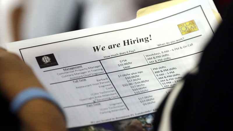 The financial markets scarcely reacted to the report. The Dow Jones Industrial Average, which had been down before the jobs report was released at 8:30 a.m. Eastern time, was off about 110 points in midmorning trading.