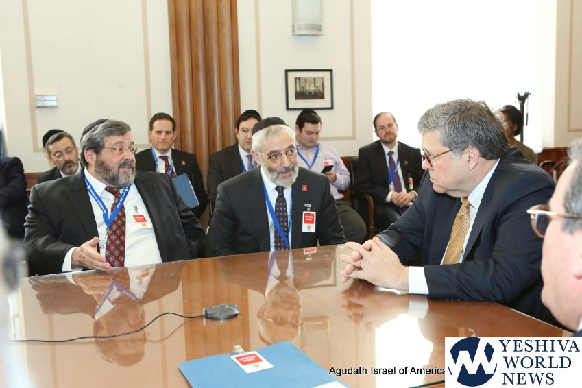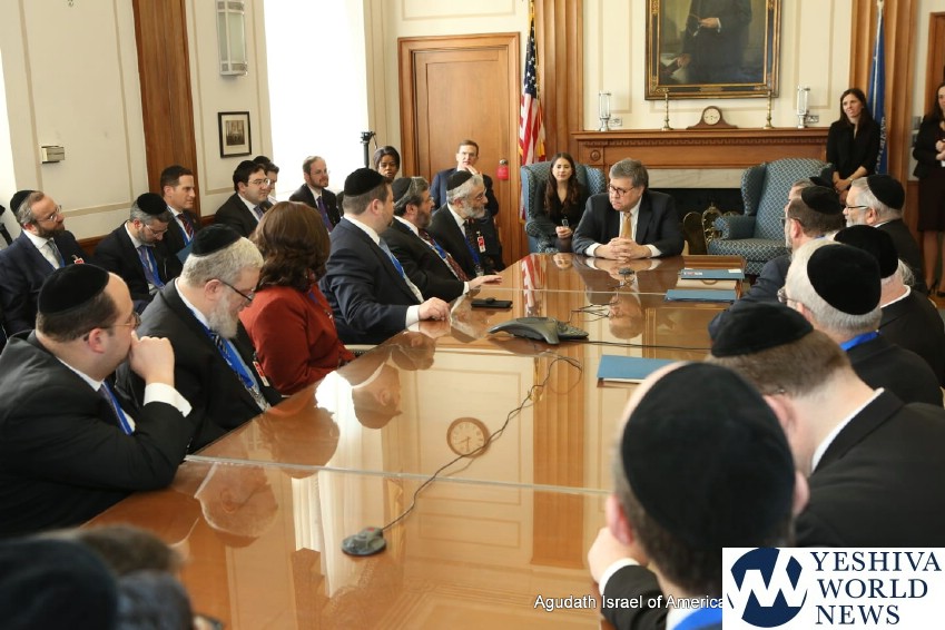 Attorney General Barr met with the Agudah group at the Robert F. Kennedy Department of Justice Building on Wednesday morning. With instances of zoning laws and other regulations cropping up with alarming frequency in an effort to stop the Jewish community’s spread, particularly in the greater Lakewood area and in Upstate New York, religious discrimination has become a significant concern over the past several years. Having served previously in the same capacity from 1991 to 1993, Attorney General Barr played a key role in the 1992 lawsuit brought against the Village of Airmont, which attempted to ban synagogues within its borders in an attempt to stem the growth of the Monsey community. That precedent setting case has been cited in numerous similar lawsuits and Attorney General Barr said that his office is proactively pursuing several cases of religious discrimination, an issue that he considers to be a top priority.