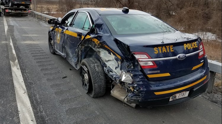 The New York State Thruway Authority is reporting that on Wednesday a trooper patrol car was pulled over on the side of the road providing traffic assistance with a disabled vehicle when a tractor-trailer hit the vehicle.