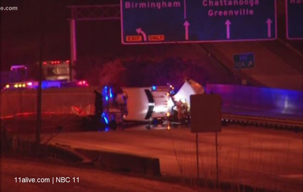 News outlets report a car cut in front of the truck around 2 a.m. Wednesday, causing the truck to lose control and crash. Atlanta police’s traffic report twitter account says the spill stained Interstate 285, just south of Interstate 20.