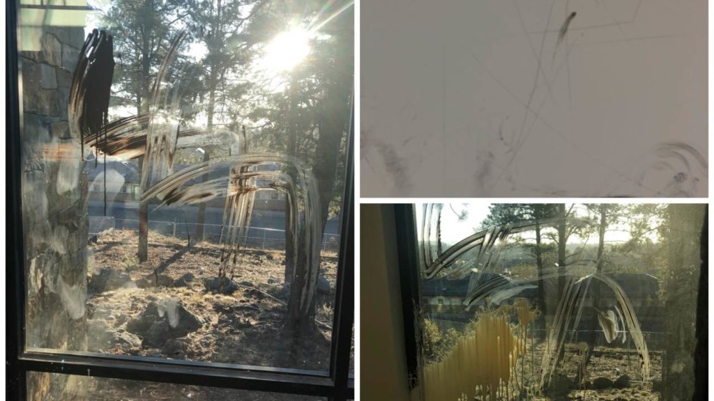 Police say paint smeared on windows and carvings in a wall appeared to be swastikas. The symbols aren’t well-defined in photos released by the Flagstaff Police Department.