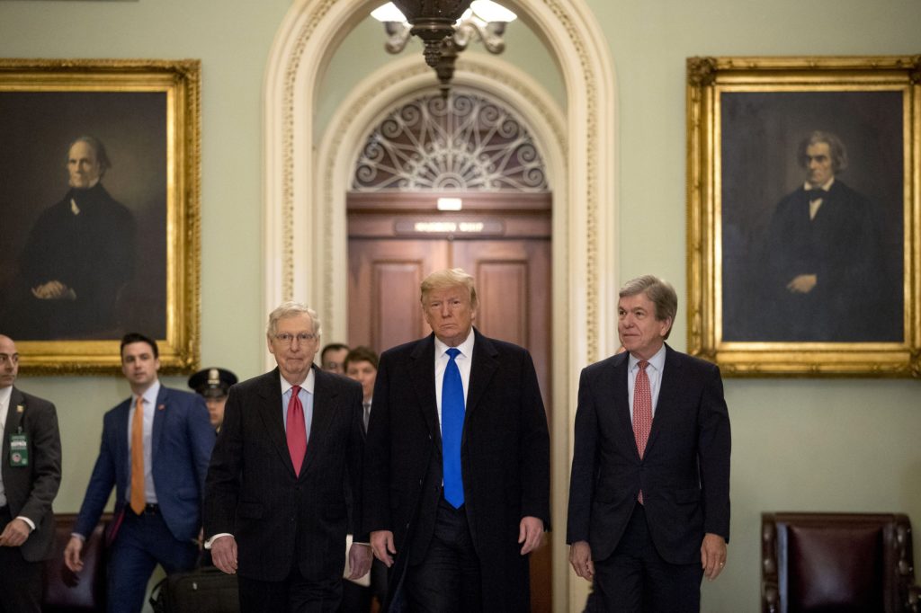 In the GOP luncheon, Trump was in a lively mood, senators said. Kevin Cramer of North Dakota said the president is “always high energy. He had a little extra today.”